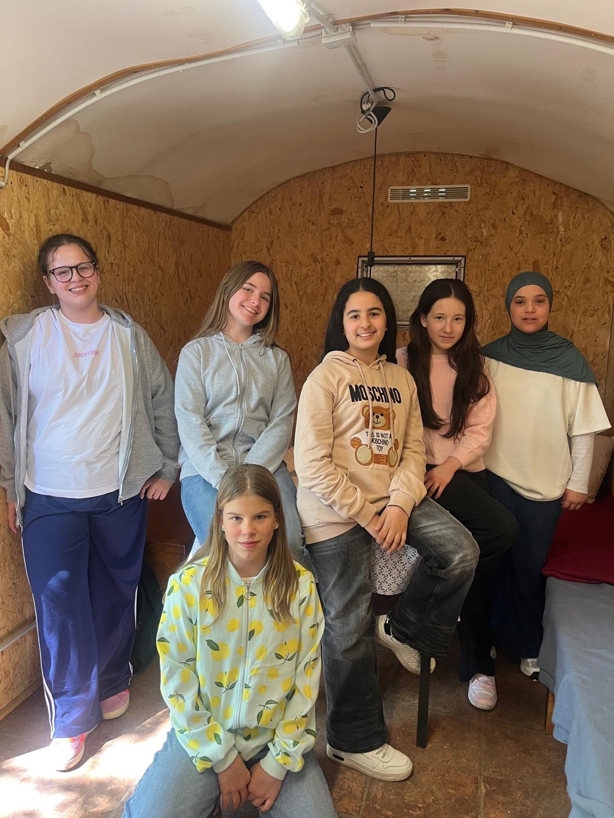 Seit fast einem Jahr engagieren sich die Schülerinnen der Klasse 6d (von links nach rechts: Matilda, Leyla, Mey, Melia, Lina, Im Vordergrund: Finja) mit großem Einsatz für unser Schulprojekt „Gute gesunde Schule-bewegte Mittagspause“.